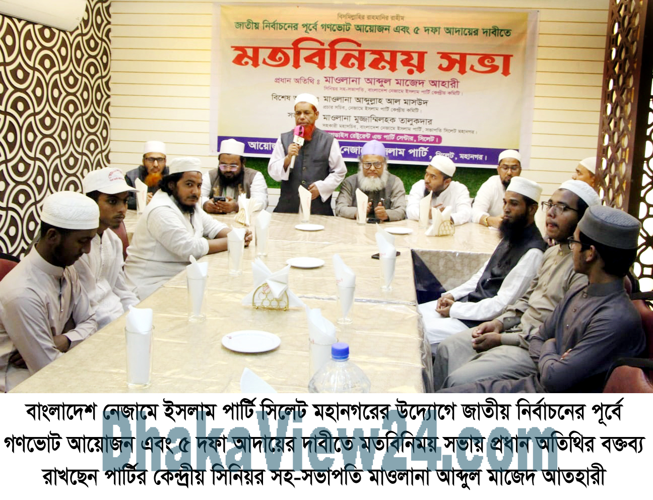শনিবার (০৬ ডিসেম্বর) রাতে নগরীর জেলরোডস্থ একটি অভিজাত রেস্টুরেন্টের হলরুমে বাংলাদেশ নেজামে ইসলাম পার্টি সিলেট মহানগরের উদ্যোগে জাতীয় নির্বাচনের পূর্বে গণভোট আয়োজন এবং ৫ দফা আদায়ের দাবীতে মতবিনিময় সভায় প্রধান অতিথির বক্তব্যে উপরোক্ত কথাগুলো বলেন।